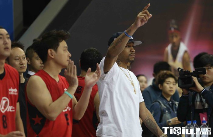 艾弗森场边鼓掌呐喊,为队员们加油助威。