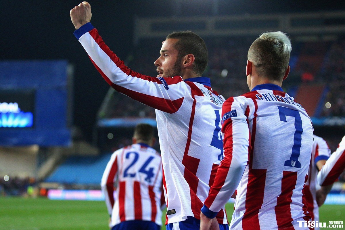 马竞球员庆祝晋级8强