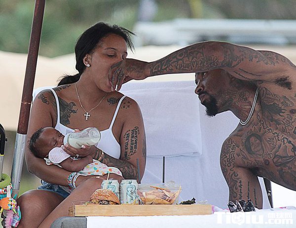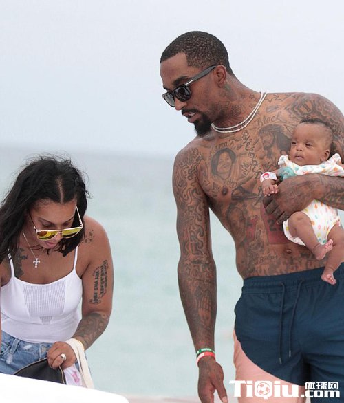 神经刀携家人迈阿密度假 JR抱娃海滩现温柔一面