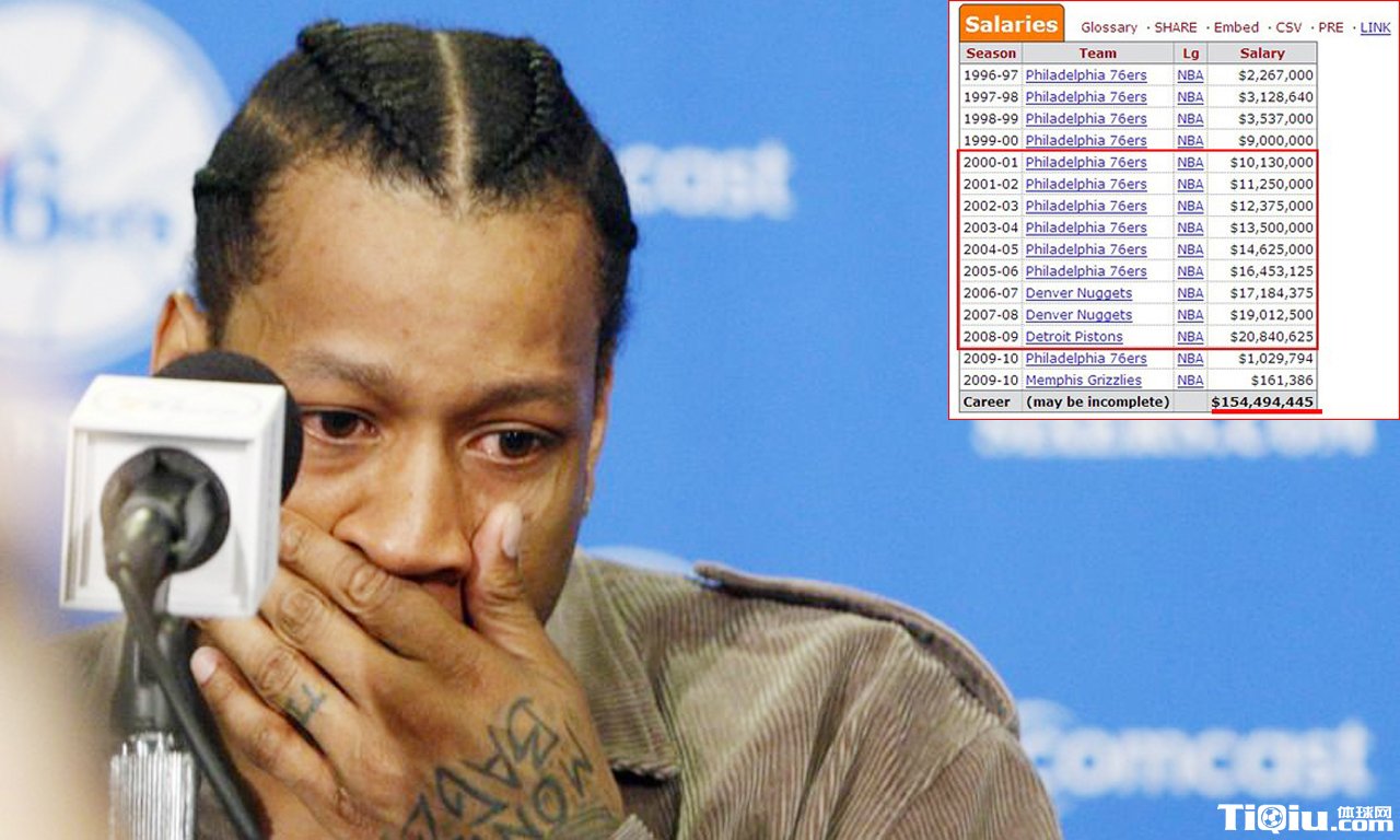 艾弗森为联盟各大强队都有效力同时他也收获巨额薪资。