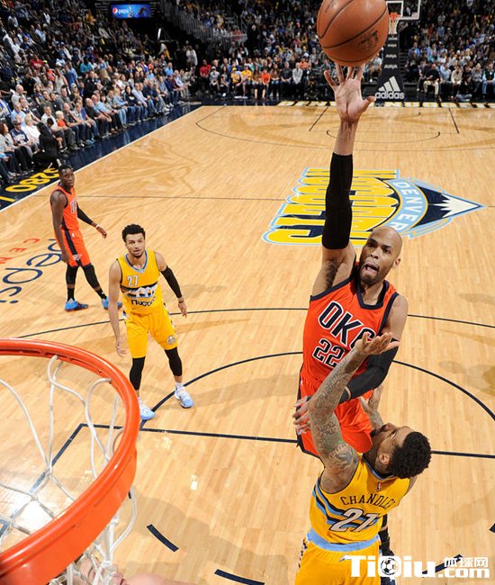 掘金球员突破奥拉迪波的防守,鞋子不错。