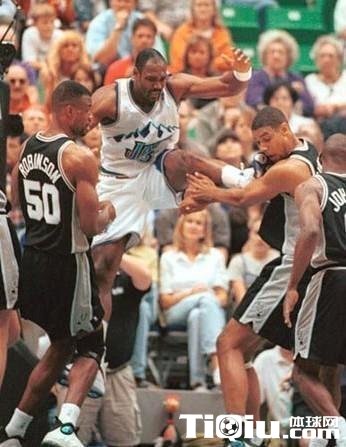 马龙曾经的好搭档斯托克顿也是当之无愧的恶棍,比赛中你总会看到他要么有垫脚的小动作,要么就抬起铁膝顶对方的裆部。姚明还曾经说过,大郅跟我说,1996年奥运会的时候,斯托克顿去补防,手指头差点插瞎了他的眼睛。