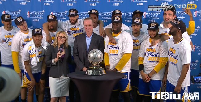 2017nba西部冠军颁奖,记者采访西部冠军成员。