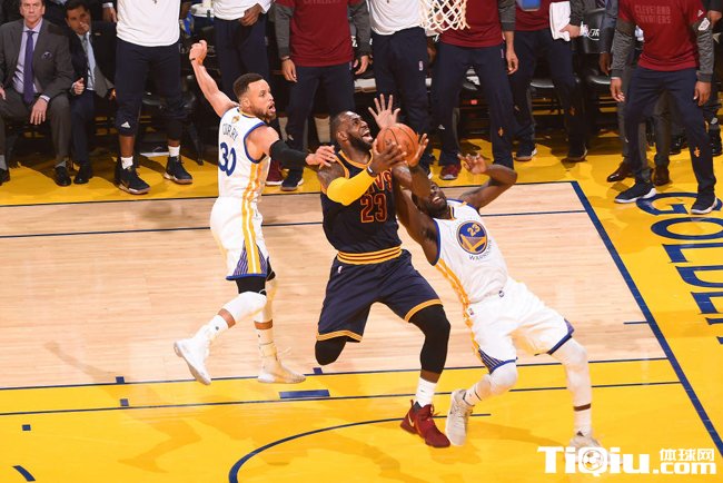NBA总决赛骑士VS勇士G1,詹姆斯和库里在场上。