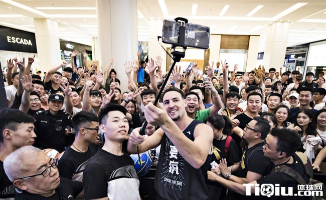 勇士队炮台汤普森中国行,活动现场人山人海,一层加一层。
