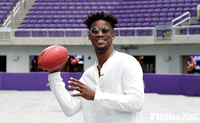 森林狼新援巴特勒写真,手拿橄榄球戴着墨镜。