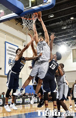 NBA夏季联赛小牛VS步行者,小牛球员出手跳投。