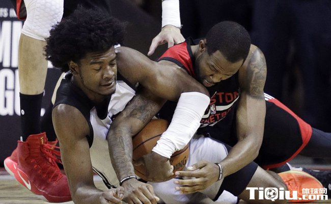NBA夏季联赛火箭胜太阳,双方球员倒地拼抢在一起。