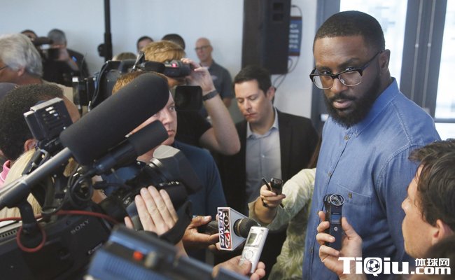 雷霆为两新援召开发布会,菲尔顿在发表讲话。