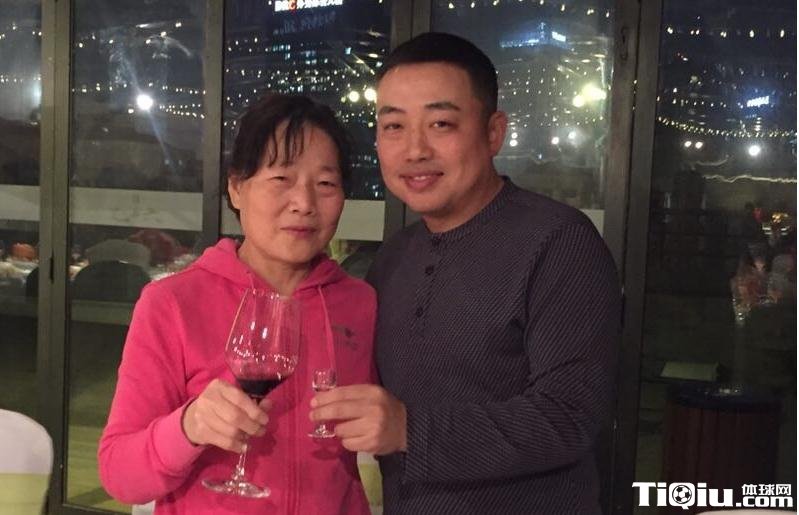 刘国梁和母亲碰杯。