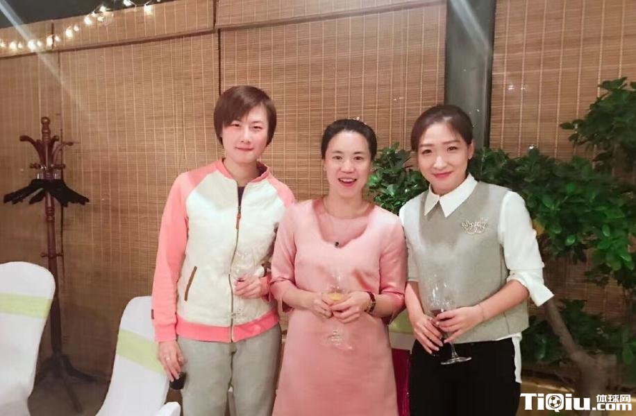 王楠夫妇与刘国梁合影。