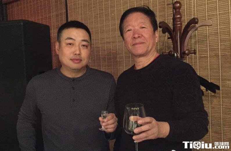 刘国梁和老丈人碰杯。