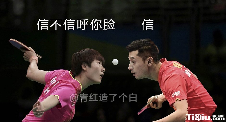 张继科和丁宁“对视”。