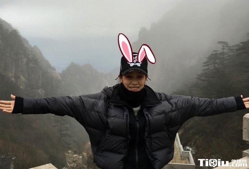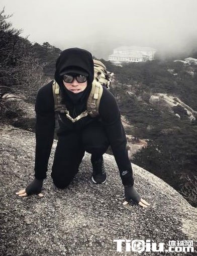 刘翔登山照。