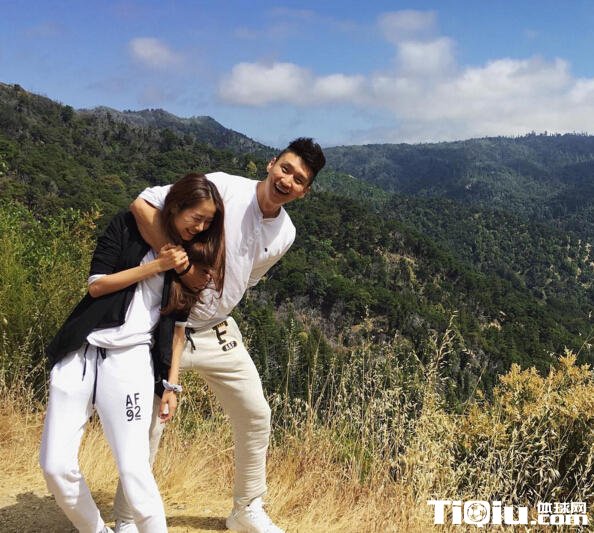 两人在山顶上的亲密合照。