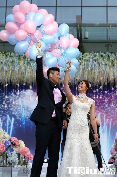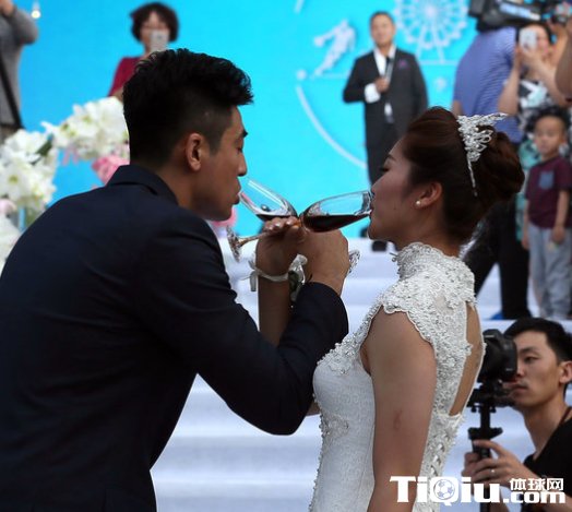 徐磊与李莹深情对视,伴郎团以及伴娘团见证幸福。