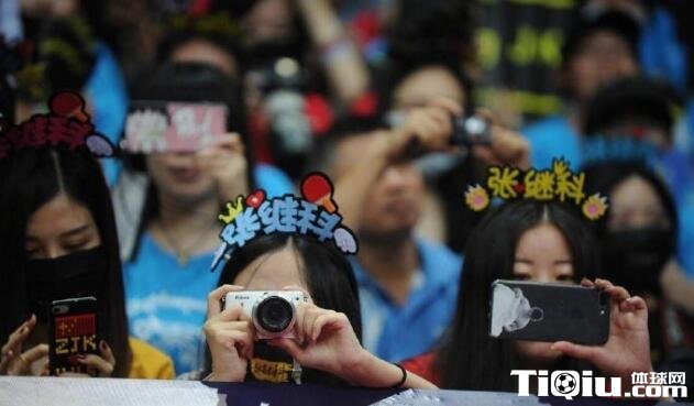 马龙张继科的男双组合吸引大批女粉丝现场助阵。