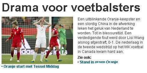 荷兰《电讯报》表示,本场比赛是充满戏剧性的,荷兰队运气不佳,一次草率的防守酿造丢球。本场比赛,荷兰队几乎没有活力,但第一次威胁是来自荷兰队,第23分钟米德玛错失机会,但此后这位18岁的天才小将隐身了,事实上上周她遭遇头痛,还有轻微脚伤,压力也太大,最终表现和期望不符。中国在首场比赛遭遇争议点球判罚,本场错失了很多机会,门将范费嫩达尔证明了她是一个好的替补。整体来说,荷兰队处于弱势,范费嫩达尔本能成为救世主,但最后在错误的判断下,犯下致命错误导致丢球。