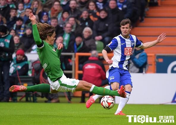 德甲第14轮,柏林赫塔坐镇奥林匹克球场迎战云达不莱梅。柏林赫塔上轮客场2-3逆转击败沃尔夫斯堡。狼堡首开记录,普拉滕哈特直接任意球破门扳平比分;随后狼堡再度领先,埃斯魏因抽射破门再度追平。伤停补时阶段,卡利朱里禁区里对普拉滕哈特犯规,柏林获得点球机会,卡卢命中点球绝杀对手。此役过后,柏林赫塔积27分高居联赛第三位,与榜首的RB莱比锡只有六分之差,表现相当出色。云达不莱梅上轮主场2-1击败因戈尔施塔特,第24分钟,克鲁泽打入回归不莱梅后的首球;随后苏特纳的直接任意球破门为客队扳平比分,不过巴尔特斯为不莱梅锁定胜局,目前云达不莱梅排在积分榜第14位。