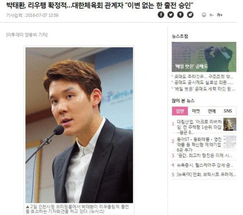 北京时间7月7日,据韩国媒体报道,韩国奥委会宣布朴泰桓可以进入到里约奥运会的参赛队员名单,不需要等到国际体育仲裁法庭CAS的判决结果,这也意味着最终朴泰桓的上诉收到了想要的结果。